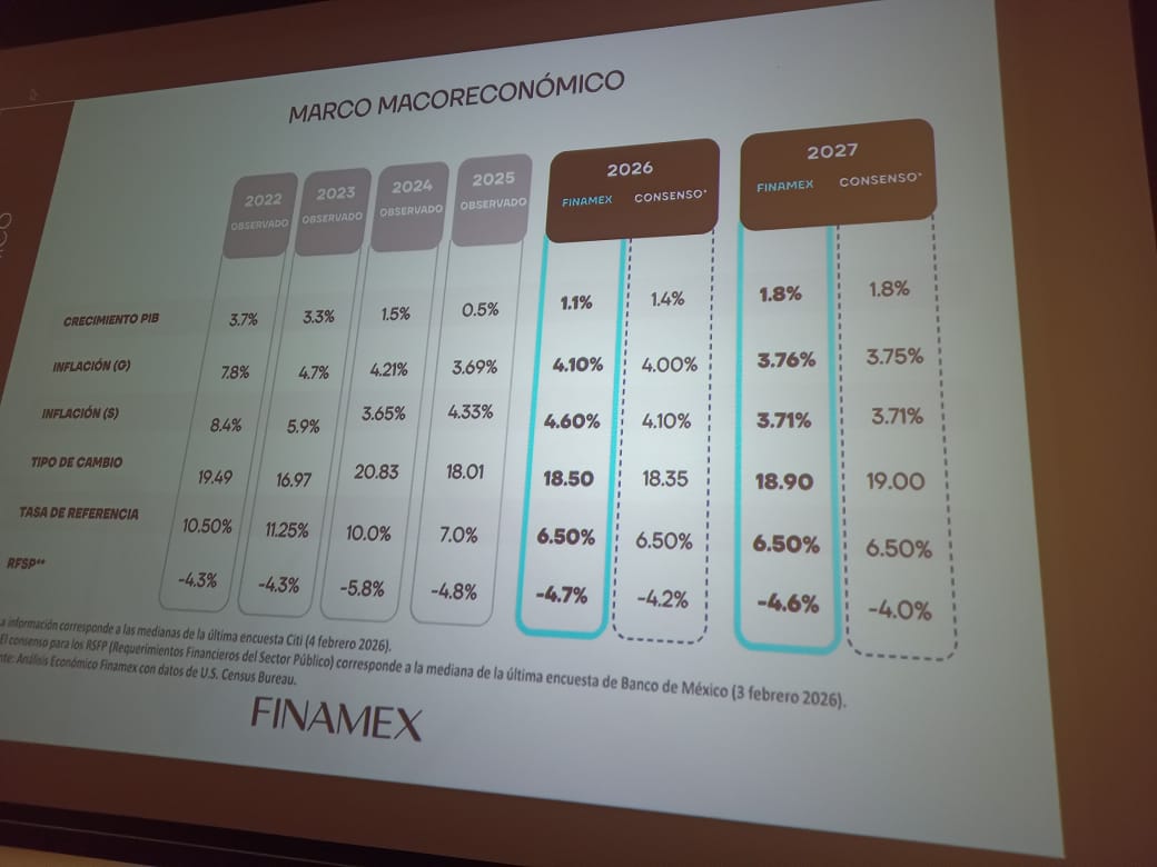 Para 2027, Finamex anticipa una ligera mejora, con un crecimiento de 1.8% y una inflación de 3.76%. Sin embargo, el economista advirtió que este repunte no representa un cambio de tendencia, sino una recuperación marginal frente a un entorno que sigue condicionado por factores estructurales.