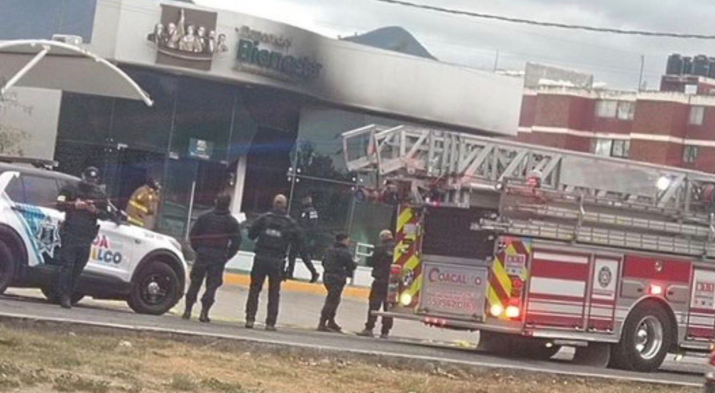 En el Estado de México, una sucursal del Banco del Bienestar fue incendiada en el municipio de Coacalco, en medio de bloqueos carreteros, quema de vehículos y operativos de seguridad en varias entidades del país.