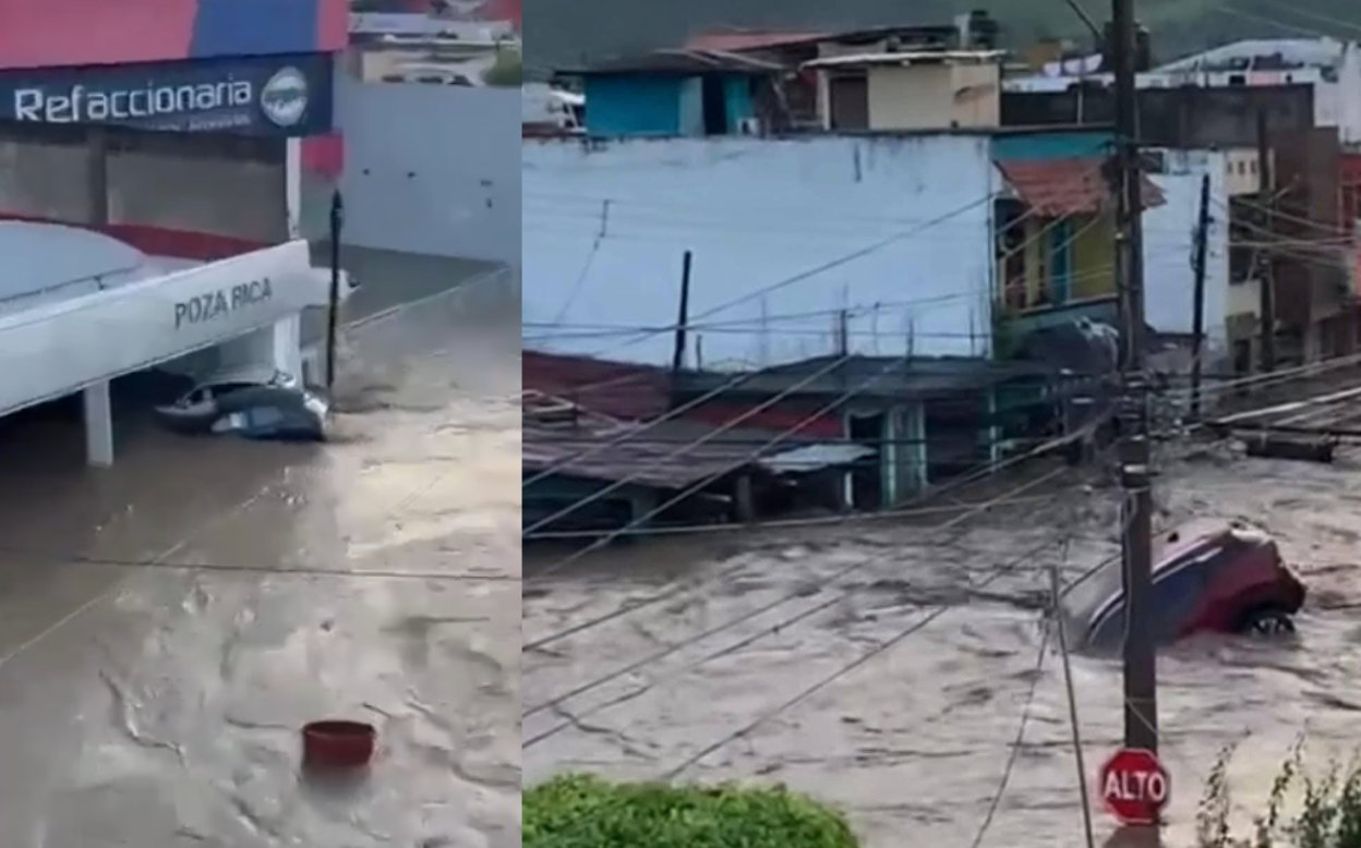 En redes sociales, se difundieron videos que muestran a personas aferradas a postes y árboles intentando resistir la corriente, mientras la terminal de autobuses y decenas de vehículos quedaban sumergidos bajo el agua.
