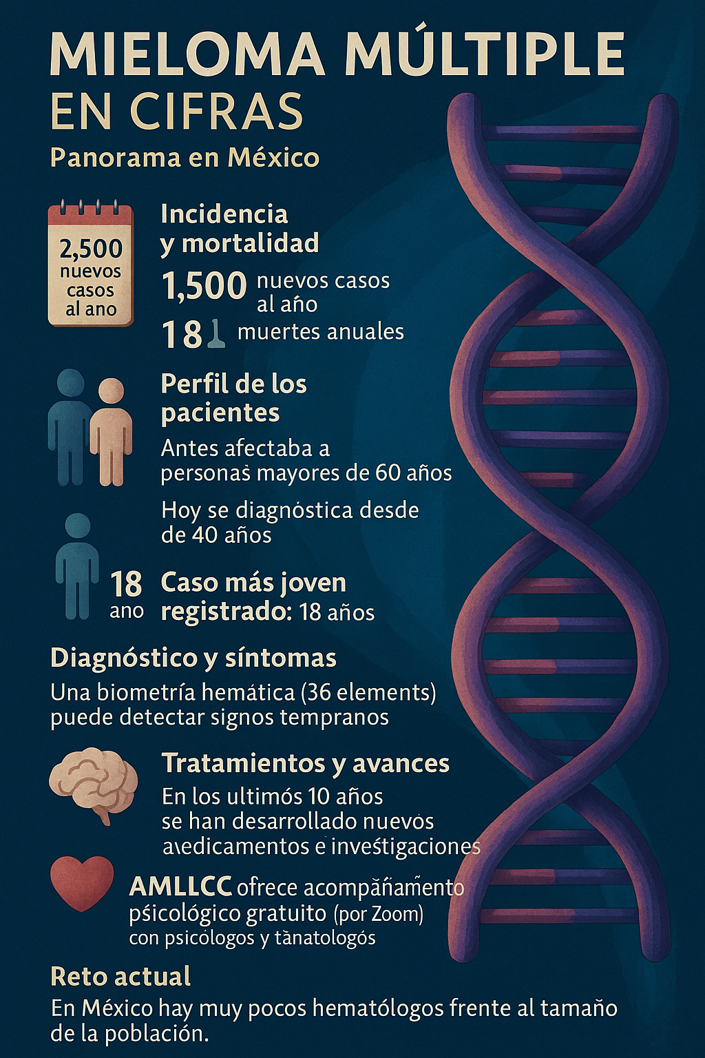 Especialistas, pacientes y psicoterapeutas coincidieron en que el mieloma múltiple, un tipo de cáncer de la sangre poco conocido, requiere más difusión, diagnóstico temprano y acompañamiento integral, pues su complejidad y síntomas difusos provocan diagnósticos tardíos y un alto índice de mortalidad en México.